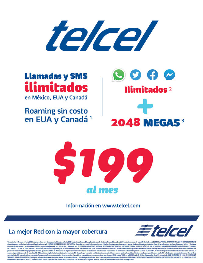 Max Sin límite 1000 Cargo Mensual por Servicio $199.00